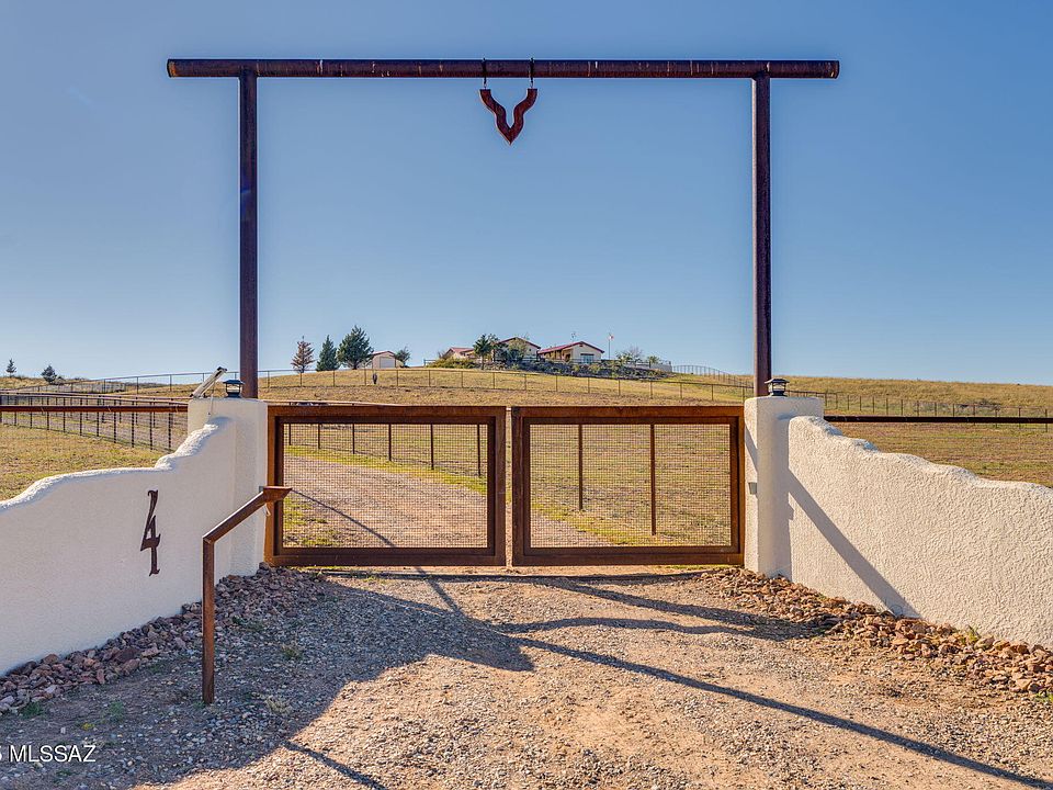 Do you dream of a custom luxury home paired with an amazing equestrian facility? Located In Sonoita, in the heart of Arizona's stunning wine country, the high-desert elevation of nearly 5,000 feet gifts you a perfect climate with mild summers that rarely exceed 100 degrees. With panoramic views for days across rolling grasslands and majestic mountain ranges, welcome to 4 Mustang Trail. This exquisite 3-bedroom, 3-bathroom stunner is a rare find, perfectly positioned on 8+ acres and offering a masterful blend of refined living and a professional-grade horse property. From the dedicated 40x60 horse stalls to the 5 fully fenced acres with top rail no climb the property also shows off its massive 20x25 custom shop.4 Mustang Trail has been meticulously designed for those who appreciate space, custom craftsmanship, and the freedom of rural living without sacrificing convenience.This beautifully designed three-bedroom, three-bath custom home blends timeless architecture with inviting comfort. At the heart of the property lies a serene courtyard, complete with a bubbling fountain the perfect setting for morning coffee or evening gatherings under the stars.