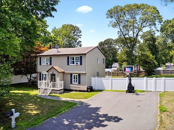 Welcome home to 4 Myrtle Lane, Coram, NY 11727! This stunning 4-bedroom, 2-bath colonial-style house is not just a home, it's your next chapter. Situated on a spacious .75-acre, beautifully maintained property, it features an in-ground sprinkler system and a BRAND-NEW ROOF, ensuring peace of mind from day one. The cozy wood-burning stove creates a warm and inviting atmosphere, perfect for family gatherings and creating lifelong memories. The massive kitchen boasts ample countertop space, plentiful cabinets for storage, and sleek stainless-steel appliances—ideal for the home chef or entertaining guests. Host elegant dinners in the formal dining room accented by charming, exposed wood beams. The two full bathrooms, finished with neutral tones and granite countertops, add a touch of luxury and comfort. The partially finished basement offers versatile space—perfect for entertaining, a private gym, or additional living areas. Convenience is key with the laundry room on the main floor, easily accessible for daily chores. Step outside to the backyard oasis—an expansive enclosed yard with a white PVC fence, ready for a pool, playset, or further expansion. Located in a highly desirable neighborhood, you'll enjoy quick access to parks, shopping, and major highways, making your commute effortless. Don’t miss this exceptional opportunity to own a beautiful piece of Coram—your dream home awaits! Contact me today to schedule your private tour or click the link for an exclusive virtual experience. Act now—your perfect home is within reach!