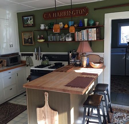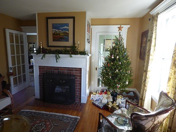 Charming 1820s in town cottage with 2 plus bedrooms, 2 baths, kitchen, dining room, great room, office/living room with french doors, circular stairway, sun porch/summer dining room and attached garage. Birch and pumpkin pine flooring throughout. Fireplace (closed off). Extensive perennial gardens with roses, lilacs, forsythia, Rose of Sharon, hydrangea, peonies, iris, lilies and much more. Two blocks from waterfront, library, shopping, and restaurants.