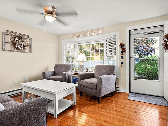 Welcome to the Castle Rock Condominium Complex! This cozy, sun-filled END unit has 2 bedrooms and 1 bath, a neutral color palette and hardwood floors throughout. The newer kitchen includes maple cabinets, granite countertops and stainless steel appliances. The bathroom has a cast iron tub, tiled walls and a new vanity. Other updates include newer windows and slider, custom blinds, as well as ductless A/C and heating! There is also a beautiful and private outdoor space with multiple storage areas. The home is conveniently located off Route 1, close to area beaches, state parks and URI.