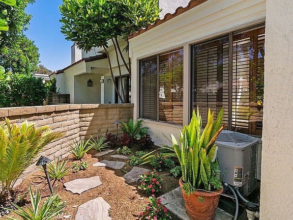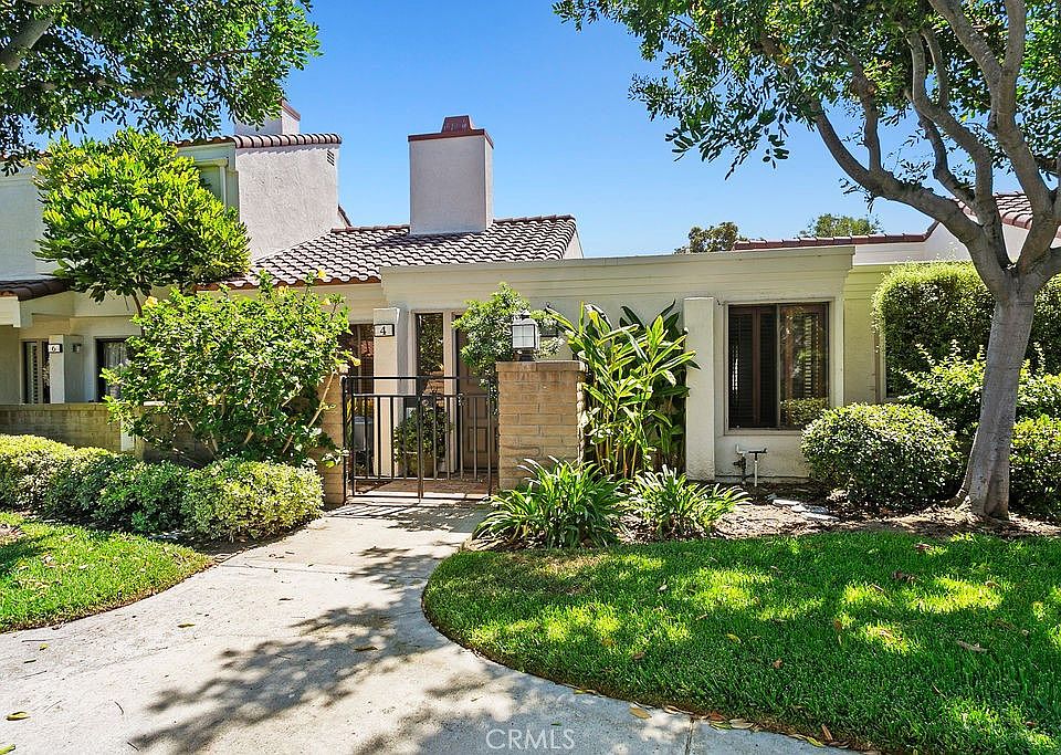 4 Navarre is in the San Joaquin Villas neighborhood of Irvine. It is a 2 bedroom, 1.5 bath home all on single level with no stairs. This home features cool travertine floors throughout with no carpet. Vaulted ceilings in the living room and dining room have south facing windows bringing in abundant light with remote control window shades. The home is bright and cheerful all day long and cool in the summer with AC. The home features an atrium off the main bedroom and kitchen that is completely private, enclosed and shaded for easy outdoor living, working and relaxing. A large main bedroom and bath has new tile and skylight that opens to let in the air and sunlight. The redone kitchen features stainless steel appliances, an ample pantry and laundry room adjacent. It's just a close walk to the 2 car garage and community swimming pool. Rancho San Joaquin Villas features ample parking and lovely sidewalks shaded by mature trees. With a bikeability score of 77, this home is moments from UCI, University Town Center, an Irvine Senior Center, San Joaquin Golf Course, Racquet Club of Irvine, University Park Shopping Center, nationally recognized schools, public library and award-winning parks. Bay breezes waft up from San Diego Creek and the home is freeway close, but upwind of the 405. If you are looking for an easeful home with a perfect climate and location, you will want to see this home.