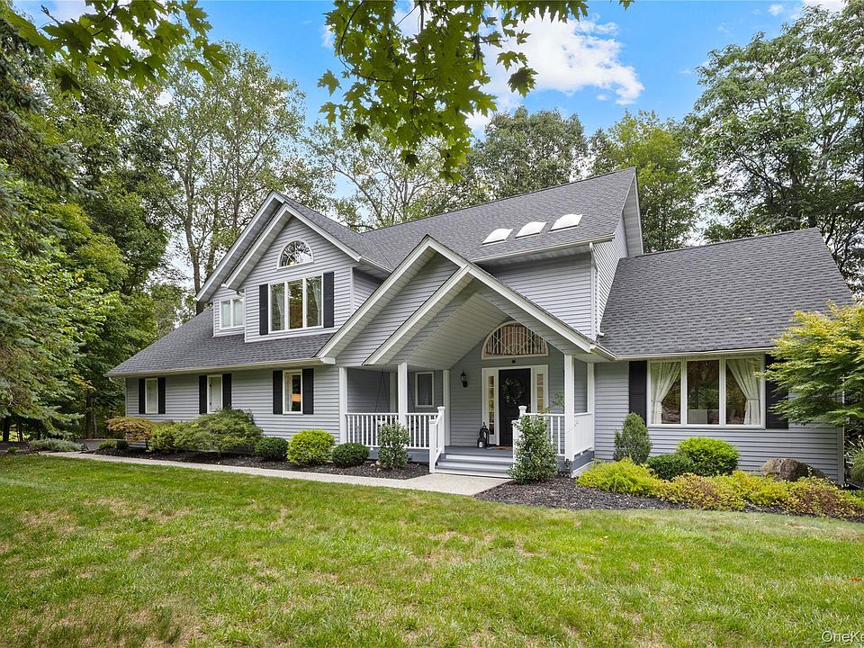 Luxury meets majesty in the prime of Chestnut Ridge. Nested on an almost acre of well maintained lush property this contemporary colonial stands out with it's many upgrades and high end finishes. Lovely front porch welcomes you into the grand 2 story entrance with detail and design, high ceilings, and sunlight streaming in from the skylights. The over sized dining room awaits ready to host and entertain. Luxurious built in wet bar with sink, dishwasher, mini kitchen and freezer. The kitchen with it's wistfully white granite countertops and custom made cabinetry designed for optimal orderliness and convenience, is a haven for every homemaker. The kitchen island with it's tasteful design and style complements this beautiful picture. Sliding doors lead to the large deck an oasis of privacy and shade . Lovely living room open to the kitchen with electric fireplace and exquisite moldings. Additional main level features: a study, full bathroom, and laundry area. On the upper level the majestic master suite has been thoughtfully designed and includes sitting area, grand huge master bath with hot tub and double vanity, and an oversized bay windows inviting the sunlight. 3 additional bedrooms with full bathroom, each spacious, elegant, and sunny. The finished lower level has a family room additional bedroom and beautiful full bathroom. The house in all it's grandeur is truly a cut above and will make every future homeowner proud.