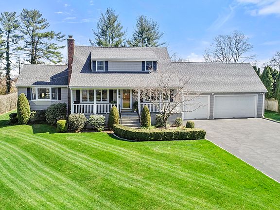 Impressive cape w/ classic New England charm! Romantic front veranda for enjoyment. Lush landscaping in a parklike setting. Privacy but convenience. Car collector's dream w/garaging 5 cars plus htd! Hardwood flrs, except MBR. Stunning & inviting. Abundant storage. Fresh, updated & delightful. Easy 2nd fl. expansion poss. Fabulous TREX deck & railings for warm weather entertaining & al fresco dining. Driveway alarm. Make memories of a lifetime. A perfect place to call home! A short walk to the new elem. school, new town arena w/new pool, tennis courts, ball park, playground, plus delicious rest. for summertime fun. Close to highway & train. Minutes from GW Ave. LL has 823 sq.ft. unfin. Garage is appox.1,200 sq.ft. Much bigger than it looks! FAR left is approx. 2,964 sq.ft. Great Home!