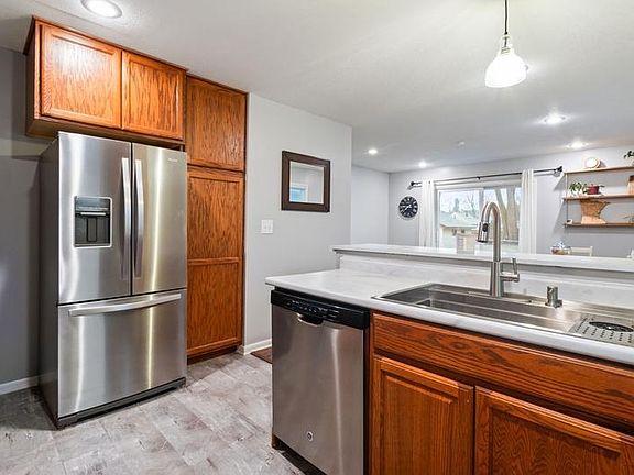 Great home with many updates and improvements! Updated kitchen (countertops, appliances, floor, and sink), insulted and heated oversized garage, finished basement and added a bathroom. Finished driveway to street, added 10 x 8 shed, added gutters. Huge fenced backyard! Highly sought after Centennial schools. Don't miss this one!