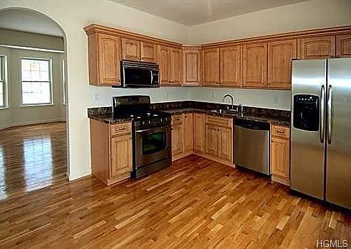 Great price, elegant 1288sf townhome with no maintenance fees. Stucco front, central air, 1 car garage, walkout basement, hardwood floors, ceramic tile in baths, living room, eat in kit, 1.5 ba, cathedral ceiling and whirlpool bath in master bathroom, walk-in closet. Beautiful unit. Minutes to I84, Rte. 17, Metro North train, Galleria shopping malls....location, location! Inside photos of similar unit, may not be exact.