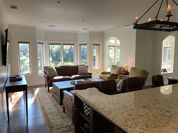 Located near the dock and Marina in the private gated community of Long Cove Club. Centrally located on Hilton Head Island, close to shopping, dining, and the beaches. Gourmet kitchen, multiple living areas, 3 car garage, 2 limestone fireplaces, hardwood floors throughout, 2 story with master on first floor, lots of closets and storage space, freshly painted interior 11/2019, large laundry room, private lot with expansive views minimum 6 months, with options to renew. up to 3 years with options to renew. Can be rented as furnished or unfurnished,