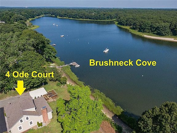 4 Ode Court is a waterfront property in Buttonwood Beach on Brushneck Cove where you will enjoy amazing sunrises & sunsets and have the opportunity to obtain a protected mooring for a boat just off your shore. This home has a first-floor bedroom, bath and laundry, giving you an option for living on just the first floor if you choose. Plus, there are three more bedrooms and a full bath on the second level. The kitchen has pine cabinets with new granite counters and stainless appliances. The 30-feet long Great Room runs across the water side of the house and includes a brick fireplace at one end; there is plenty of room for a dining and a sitting area with beautiful views. Additionally, there is a 12 x 13 family room on the first floor. This neighborhood has a historic community building called The Casino with two manual bowling alleys, activities for kids, and is surrounded by three tennis courts, a pickle ball court, a playground, basketball court, and baseball field. A beautiful historic chapel in the center of the peninsula is still used for weddings and non-denominational services. The best part about living in Buttonwoods Beach is the close sense of community; come see what a special place this is to live. (No flood insurance required)