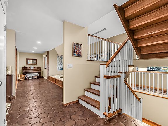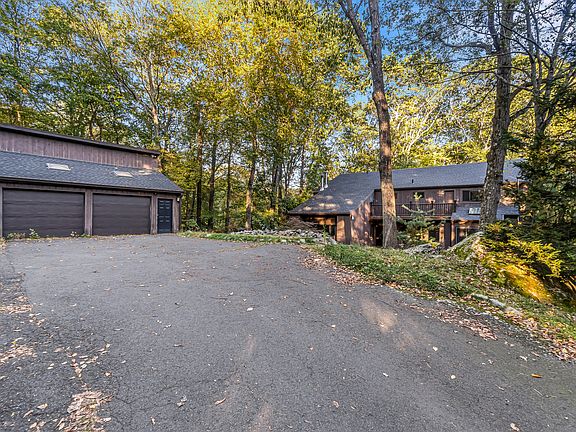 Tucked away on a peaceful cul-de-sac, this 3-bedroom, 3.5-bath Contemporary retreat blends architectural interest with warmth and function. Designed with multi-level living and dramatic sightlines, the home features a step-down living room, step-up dining area, and open staircase that brings in beautiful light and flow. Inside, you'll find vaulted ceilings, skylights, hardwood floors, and transom windows that create a bright and airy feel throughout. The spacious kitchen is ideal for the home chef - boasting granite countertops, abundant cabinetry, and high-end Jenn-Air and ASCO appliances. Upstairs, the primary suite opens to its own private deck - the perfect morning coffee spot. The finished lower level offers an additional 454 sq ft of versatile space, perfect for a recreation room, playroom, or home office. Outdoor living shines here, with multi-level decks featuring built-in seating and planters, a balcony deck off the dining room, and Pella sliders connecting indoor and outdoor spaces seamlessly. A detached two-car garage with loft/workshop provides room for hobbies, storage, or studio space. Set in a private, natural setting yet close to all local conveniences, 4 Old Gate Lane is more than a home - it's a peaceful lifestyle waiting for you.
