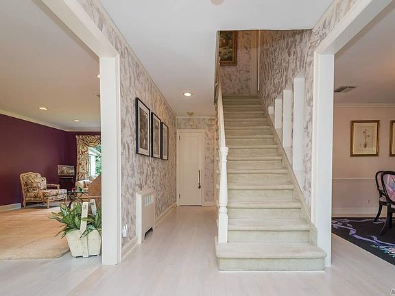 GN/Saddle Rock Grand Ctr Hall Colonial w/everything you need for your New Normal. Mstr Bdrm is massive w/over 500 sq ft, room for personal gym & en-suite bathroom + walk-in closets. 3 Add'l beds on 2nd floor two of which have built-in work spaces for at-home virtual learning. Abundant entertaining space on 1st lvl w/large dining room off expansive beautiful B&W granite EIK. Magnificent frml LR leads to family room w/fireplace & built-ins for entertainment & separation. Bonus Sun Room leads to backyard off the family room. Full marble bath & home office/bdrm & 2 car att. garage on main level. Sliding doors off EIK lead to oasis garden deck for outdoor dining, sun bathing & total privacy. Lower lvl has large carpeted finished space perfect for working from home or play space. Plenty of storage & laundry facilities. 30 mins to NYC by LIRR, close to mjr Highways, consistently Top Rated GN School District, outstanding GN Park District & close to Town & houses of worship. Taxes UNDER $20k.