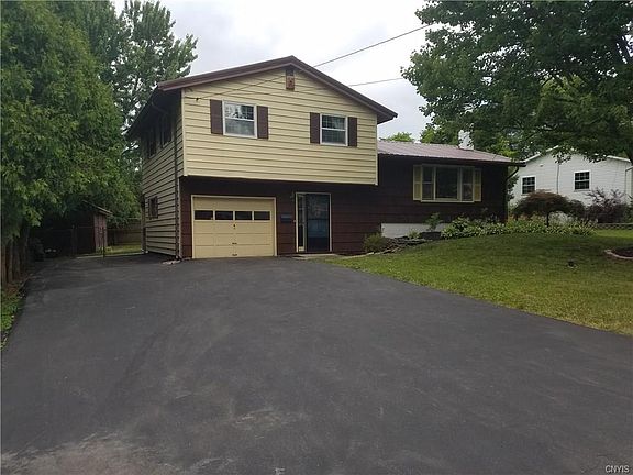 Welcome Home! Beautifully kept four level split in the heart of Bayberry. Walk in the front door to an inviting front entry that opens to the ground floor living space. Head upstairs into the spacious and cozy living room and gorgeous wood burning brick fireplace. Upstairs you will find three perfect sized bedrooms and a stunningly updated full bath. Enjoy your coffee sitting at the breakfast bar in the fully updated kitchen equipped with new stainless appliances, new counters, and tile backsplash. Formal dining, large partially finished basement for all your storage needs, and an attached single car garage. Exit the ground level sliders and walk out onto the brand new covered, concrete patio perfect for hosting BBQs. Metal roof installed 2018. Liverpool schools.Schedule a viewing today!!