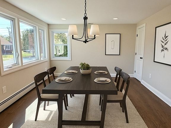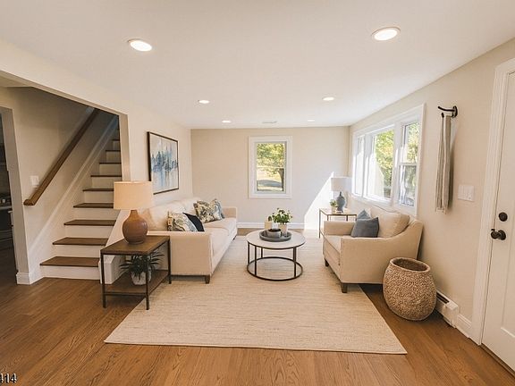 Welcome to this completely remodeled charming Cape Cod style home in the heart of Elmwood Park with access to Birchwood Park right across the street. The main floor boasts a spacious living room/dining room for entertaining guests after walking through the enclosed front porch. The brand-new kitchen features white shaker style cabinets, premium quartz countertops, tiled backsplash with LG stainless steel appliances. The main floor also features a full bathroom, bedroom, and enclosed side porch for year-round use equipped with heating/AC. Upstairs you will find a large primary bedroom, along with a full modern bathroom, and an additional bedroom. The fully finished basement features a large open layout with luxury vinyl flooring, recessed lighting, a laundry room, and a storage room which is town approved and can be converted into a third full bathroom. Updates include new windows, siding, gutters, full electric, full plumbing, central air, hardwood flooring on the main two levels, bathrooms, kitchen, insulation, etc. Have peace of mind of moving right in without having to do any work! Conveniently located to many major highways and a five minute walk to NYC bus stops.