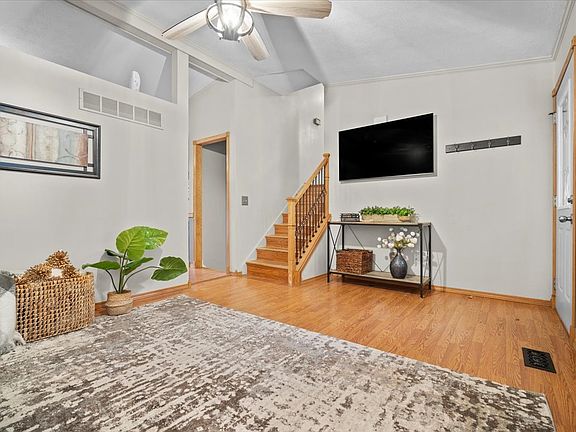 Secluded 4 bedroom 2.5 bath tri-level at the end of Palm Ct in Oakwoods subdivision. Plenty of shade on this wooded lot. Home comes with primary bathroom, fenced yard and 3 finished levels. Roof replaced 2013. Windows replaced with Window World lifetime warranty. TVs and mounts stay. Lower level remodeled in 2012. New water heater installed 2024. Washer and dryer stay. Close to trail and neighborhood park. Amazing neighbors!
