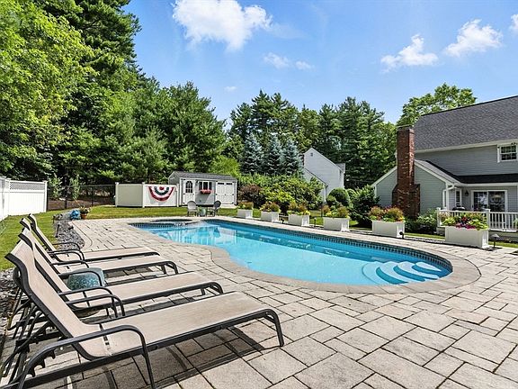 Welcome to your dream home in an incredible cul-de-sac neighborhood! Impeccably maintained by its original owners, this 4-bed plus office property blends luxury, comfort & convenience. Main level offers sun-filled living spaces, including a cathedral-ceiling family room with fireplace & a designer kitchen with Wolf & SubZero appliances that flows to a resort-style backyard. Entertain with ease on the composite deck and paver patio, or unwind by the firepit and spectacular Viking Trinidad pool & spa, all enhanced by Hinkley lighting and 11 speaker sound system with in-ground subwoofer. Upstairs, the primary suite features a private office/sitting room, while the finished lower level adds versatile space for play, work or fitness. Newer Lochinvar high efficiency boiler, Lennox central AC, architectural shingle roof & gutters, close proximity to top schools, shopping, the Walpole Country Club, and the commuters convenience of Rt 1 & 95, this home is a rare find where every detail shines!