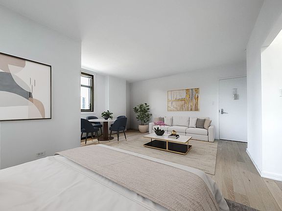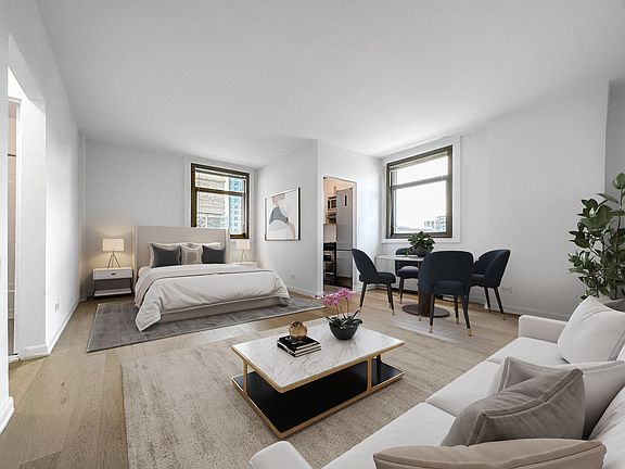 Spacious Alcove studio with double exposure. Faces north and east with excellent light. Views of Chrysler Building, Park Avenue and partial river view. Hardwood floors throughout. Separate kitchen has custom cabinets, quartz counter-tops and stainless steel appliances. Walk-in closet. Three closets. Pet friendly, 24Hr doorman building. Close to everything.