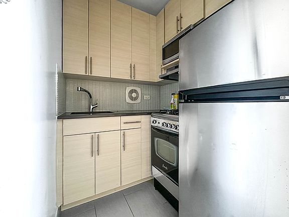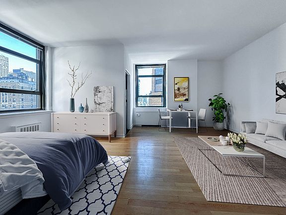 Spacious Alcove studio with double exposure. Faces north and east with excellent light. Views of Chrysler Building, Park Avenue and partial river view. Hardwood floors throughout. Separate kitchen has custom cabinets, quartz counter-tops and stainless steel appliances. Walk-in closet. Three closets. Pet friendly, 24Hr doorman building. Close to everything.
