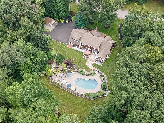 This Stunning Custom Built 3-4 bedroom Expanded Cape shines with numerous upgrades and high end appointments and is set on a beautifully landscaped 3.23 acre lot. The first floor features a living room with vaulted ceiling and gas fireplace, a recently remodeled dream kitchen with top of the line appliances, custom cabinetry, granite counters, a deep farmhouse sink, cherry center island and a wet bar and is open to the dining room. The adjoining family room with a raised brick hearth with gas stove and custom built-in entertainment center opens to a heated 4-season sunroom which overlooks the private backyard and gorgeous in-ground gunite pool and patio area. There is a first floor primary bedroom suite as well as two 2nd floor bedrooms with ensuite bathrooms. If you need a 4th bedroom, the 2nd floor office can be enclosed or use the spacious great room over the 3 car garage. The garage is amazing with an epoxy finished floor, Gladiator organization system and workshop. This property is exceptionally well-maintained with new roof 2015, Buderus boiler 2016, new a/c 2017, new driveway 2021, pool refurbished with new decking, gunite and pool equipment 2019, new trex deck, stone walkway to pool and granite patio 2019 and so much more. This spectacular property is truly a special place to call home!