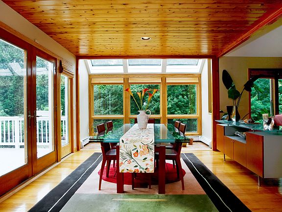 Beautiful country contemporary with hardwood floors, exposed beams, vaulted ceilings and skylights. Gated drive to two beautifully landscaped acres with large, level playing field lined with stone walls. Beautifully-scaled Living Room with fireplace. Formal Dining Room with knotty-pine ceiling, a sky-lit greenhouse area and French doors to deck. Family Room with doors to the Screened Porch open to the newly renovated Kitchen. First floor Master Suite. Three additional Bedrooms upstairs.