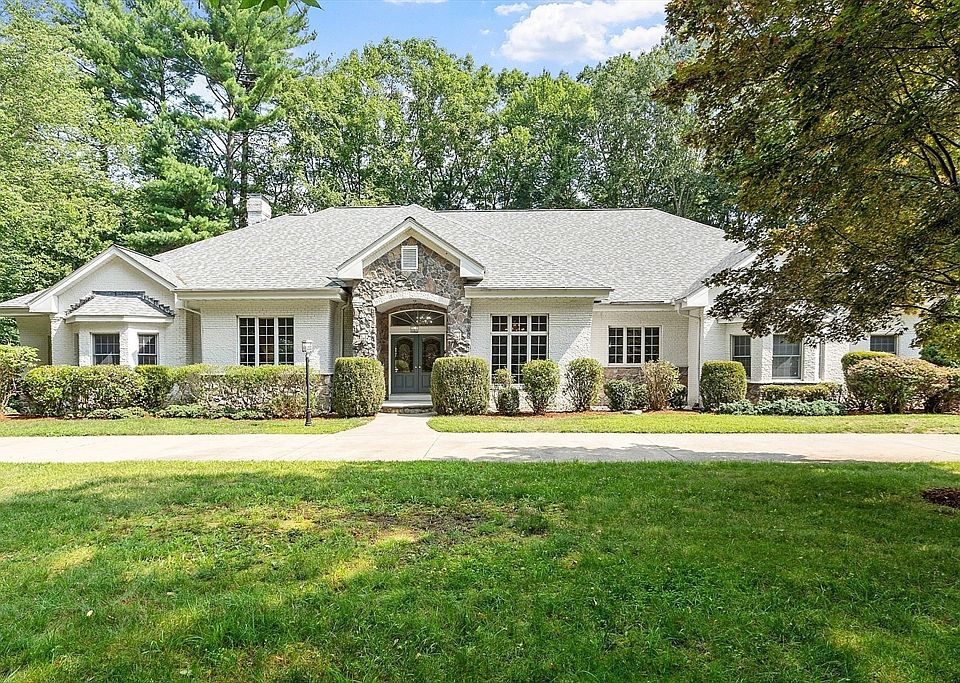 Grand and sophisticated one-level living! Almost 4,000 square feet of living space all on one floor! There are four spacious bedrooms, three and a half bathrooms, multiple large living and dining spaces, an office, sunroom, laundry room with a sink and cabinetry, and a four car garage. The unfinished walkout basement offers over 3,600 square feet of storage space and a possible future expansion opportunity. You will be greeted by a circular driveway, custom stonework, and a lovely yard with professional landscaping. The extra high ceilings, tons of large windows, pocket doors, crown molding, fireplace, and hardwood floors add to the home's charm. The oversize eat-in chef's kitchen makes cooking and entertaining a breeze. The sunroom offers a cozy spot to relax, the rear deck and patio provide space to enjoy the nice weather, and the office makes working from home convenient. Updated roof, updated HVAC, fresh paint, new carpeting, refreshed landscaping, and a backup generator!