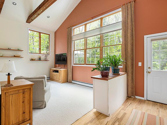 Step inside and you're greeted by a sunny great room filled with natural light, an inviting space for everyday living or hosting friends and family. A wood-burning fireplace/stove adds warmth and character, making it the perfect spot to gather during cooler months. The home's layout is easy and open, with three comfortable bedrooms, two full baths, and an office for those working from home.