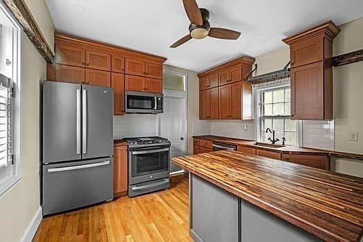 In-unit laundryGleaming hardwood floorsButcher block countertopsStainless steel appliancesCustom cabinetry