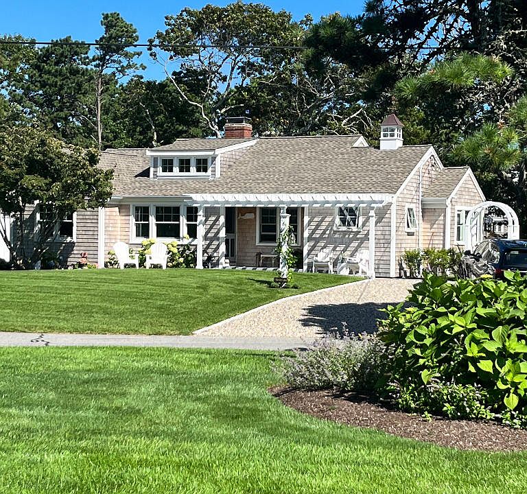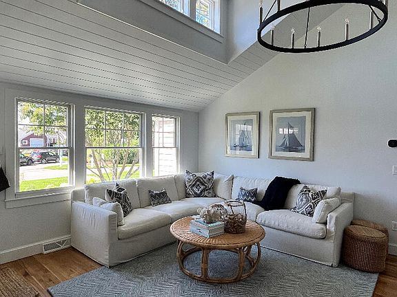 Welcome to 4 Porter Lane in highly desired Wrinkle Point - a private community overlooking the Bass River and Nantucket Sound. This completely redesigned home has everything you need for your beach or year round home. This 3 bedroom and 2.5 bath home has been remodeled down to the studs. As you walk through the front door, you will notice the interior designer's touches with vaulted ceilings and open concept, large fireplaced family room and dining area adjoining the new white kitchen with quartz countertops. Separate living area open to kitchen with sliders to patio. Primary bedroom has vaulted ceilings and en-suite bath. Don't forget to rinse off from the beach in the all new outdoor shower and stay cool with the new central AC system! Renovations include all new Andersen windows, siding, maintenance free exterior trim boards, roof, landscape, 200 amp electrical, all plumbing including main water line, septic system, irrigation, landscape lighting, shed, etc. Wrinkle Point has 3 private beaches, marina, club house & a heated pool. Short walk to W. Dennis Beach, and yacht club.
