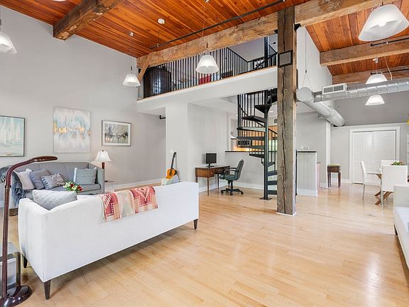 Dreaming of living within walking distance to downtown Andover? This is your chance! Nestled close to trendy shops, upscale restaurants, commuter rail, and vibrant nightlife, this fabulous end unit loft offers a chic urban lifestyle. Featuring hardwood floors, large windows, and soaring ceilings, this home is both stylish and inviting. The first level is bright and airy with a spacious living area, dining space, designated office space, and a kitchen equipped with a gas stove, stainless appliances, and sleek black granite counters. Convenience is key with a half bath and in-unit laundry on the main floor. Take the spiral stairs to the large bedroom with an ensuite bathroom and walk in closet. Spend time on the balcony overlooking the river and garden with a good read, or just relaxing. There is even an onsite fitness center. Enjoy easy living in this cool loft-style condo.
