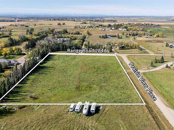 ** Welcome to Your FUTURE DREAM HOMESITE ** This Stunning 3.63-ACRE CORNER LOT is perfectly positioned Just Outside Calgary city limits—offering the Best of Both Worlds: PEACEFUL COUNTRY LIVING with the CONVENIENCE OF CITY ACCESS only 10 Minutes Away. Set in a Quiet Cul-De-Sac among Elegant Estate Homes, this Parcel offers PANORAMIC VIEWS of the City Skyline and the Rocky Mountains. A DRILLED WELL is already in place, and POWER, GAS, AND TELEPHONE SERVICES are at the property line—making it READY FOR YOUR CUSTOM BUILD. There’s Abundant Room for an Accessory Building or Shop, giving you Flexibility to Create the Lifestyle you’ve been dreaming of. Whether you envision a Modern Abode or a Serene Retreat, this Lot is Your BEAUTIFUL BLANK CANVAS. With the TRANQUILITY of Rural Life and NEARBY MULTIPLE AMENITIES in Mahogany, McKenzie Towne, and more… You’re Perfectly Connected—Yet Perfectly Tucked Away. ** Excited?? The Wait is Over and The Opportunity is YOURS -- Schedule your Viewing Appointment Today! ** ....... DIRECTIONS: Beginning in SE Calgary on Stoney Trail --> Exit onto Hwy 22X heading East, then Turn Left onto 104 Street SE (heading North), then Turn Right onto 146 Ave SE (heading East), then Turn Left onto Range Road 284A (heading North), then Turn Right onto Prairie View Place. The Land Lot is located on your Immediate Right after turning onto Prairie View Place (at the Corner of Prairie View Place and Range Road 284A).
