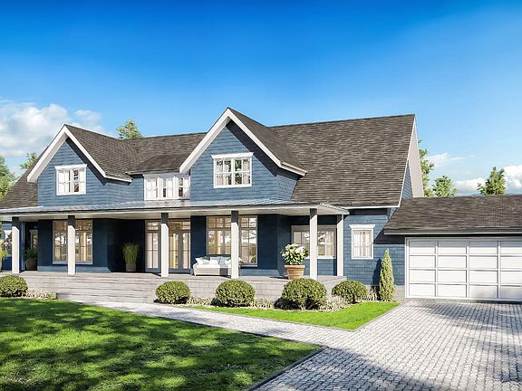 This brand-new 5-bedroom, 3.5-bath coastal farmhouse blends modern luxury with timeless design. Thoughtfully crafted with premium finishes throughout, it features 9-foot ceilings, an 18-foot vaulted great room with a custom fireplace, built-ins, and an open floor plan perfect for entertaining and everyday living. The designer kitchen is truly the heart of the home. It showcases solid wood cabinetry in soft sage and dove tones, Calacatta Prado quartz countertops and backsplash, and a large center island with a built-in microwave, prep sink, and elegant brass chandelier. The kitchen is equipped with high-end GE stainless steel appliances, including a gas range with an air fryer, French door refrigerator, and a quiet dishwasher. A pot filler, brushed brass fixtures, and soft-close cabinetry add to the thoughtful details, while a spacious walk-in pantry provides additional storage and convenience. The first-floor primary suite offers a relaxing retreat with a spa-like bathroom featuring a freestanding soaking tub, double vanity, and tiled shower. Upstairs, you will find additional bedrooms, a versatile loft, and a beautifully appointed bathroom. This home is designed with efficiency and durability in mind, featuring a Bosch dual-zone HVAC system, Rinnai tankless water heater, sound-insulated six-inch exterior walls, and a sprinkler and fire suppression system. Outside, enjoy covered front and rear porches, a finished two-car garage, and a newly paved driveway. Every detail of this home reflects quality, comfort, and thoughtful design, creating an exceptional coastal living experience. Photos are digital renders.