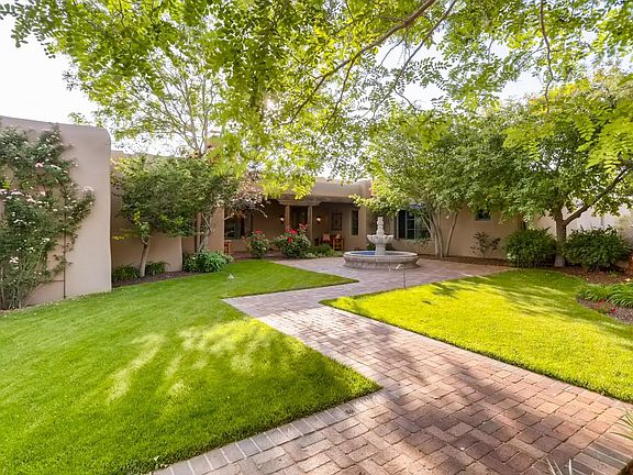 Behind a distinguished rustic gate lies this gracious and comfortable private oasis ready for you to call home. As you enter, a perfectly manicured courtyard and the tranquil sounds of a grand fountain welcome you to the grounds of this nearly two-acre private estate. Pass through the first of many covered portals to the front entry, where you'll find yourself greeted by striking hand-carved wooden columns and an abundance of natural light.