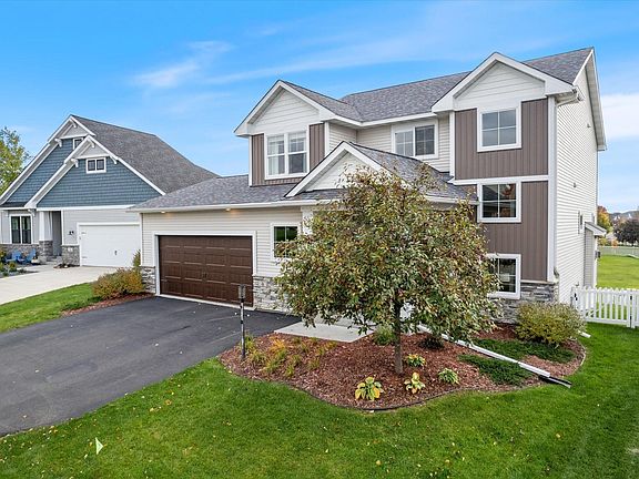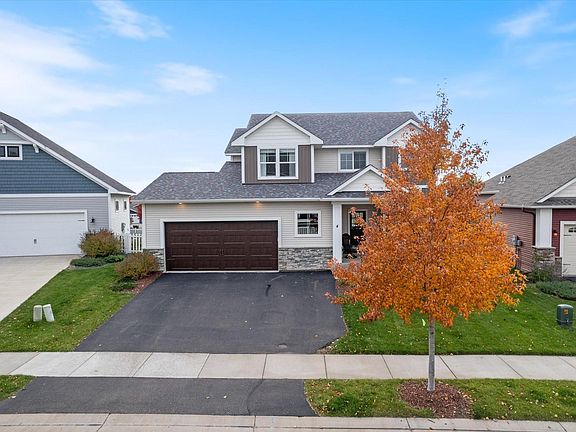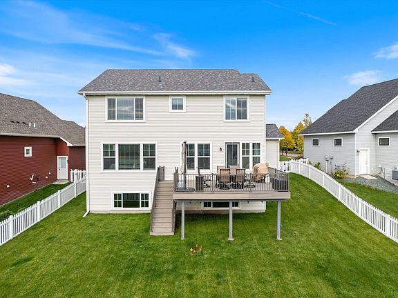 Beautiful move in ready 2 story in sought after Heritage Greens in Hudson, WI. 5 bed, 3 bath, oversized 2.5 car garage. Full, unfinished basement with large windows & tons of light. 4 season porch, great deck, new roof. Beautiful flooring, great living spaces - and an AMAZING kitchen. Rich cabinetry, gas stove with beautiful custom hood & stunning custom concrete countertops - you will love this kitchen! Incredibly useful island, oversized, tons of seating plus so much room to cook & create. Stainless steel appliances- walk in pantry, main floor bath. Laundry and 5 beds all on the upper floor - great for family, guests, playroom, your home offices - all the things. Large primary with gorgeous windows, walk in closet and spa like ensuite. Full bath for other beds to share. Large backyard, fully fenced - and gorgeous deck. Great neighborhood - with sidewalks, parks, and front porches… come home to Heritage Greens where neighbors wave, walk their dogs and children play.