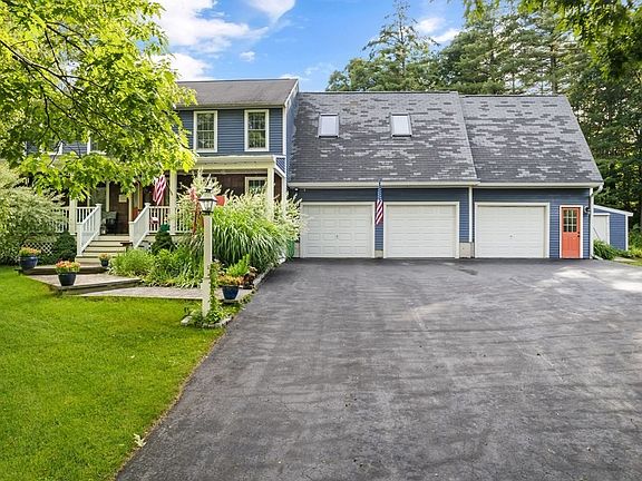 Indulge in relaxation at this splendid 3 bedroom, 3.5 bath Colonial with a farmer's porch, a 3-car heated garage, and a separate office with its own entrance. The above ground pool with a new deck and a 400 sq.ft brick patio, is perfect for hosting gatherings. The living room showcases hardwood floors, a custom stone fireplace with a Harmon pellet stove, a bar, and a glass door with side lights opening to the backyard. The kitchen is adorned with hardwood floors, granite countertops, and ample cabinetry, flowing into the dining room with built-in seating and storage. Upstairs, the primary bedroom suite features a custom oak walk-in closet, hardwood floors, and a spa-like bath with tile, radiant floors, double sinks, and laundry area. The other two bedrooms share a full tiled bath. The basement offers a finished space for a gym or office. Additionally, the owned solar panel system almost completely eliminates the electric bill.