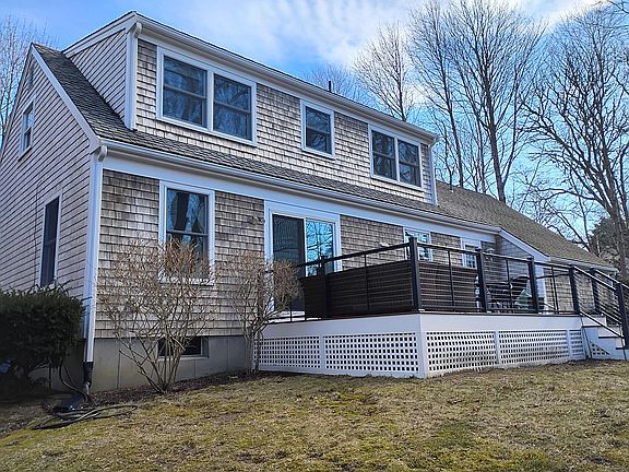 Immaculate 3 bedroom, 2 bath Cape Cod 2-story home with 2 large bedrooms upstair and 1 downstairs. Both baths have a hand shower over tub and Corian vanities. Living room with wood-burning fireplace. Dining room with Anderson glass door to backyard. Kitchen features Corian countertops with self-cleaning GE oven, Bosch dishwasher, refrigerator-freezer, and instant hot water. Utility room off the kitchen with washer and dryer. Ample storage space, attached oversize garage with garage door opener and remote, shelving and a work bench. Up and downstairs hallway linen closets. Full basement with bulkhead access. 1 year old wall-to-wall Karastan carpeting throughout. Last home at the end of a private, residential street with short walk to Hens Cove beach.