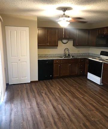Top right unit. One level- Large living room with coat closet, Kitchen with pantry and sliding-glass doors to patio/deck, Two bedrooms, One bath, W/D hook-ups, linen and storage closet in hall. Hwy 159 to Junction Drive W, turn left on Cougar Road and left to Quail Hollow Ct., (Junction Drive W is located across from the entrance to Cottonwood Mall) Tenant responsible for utilities.