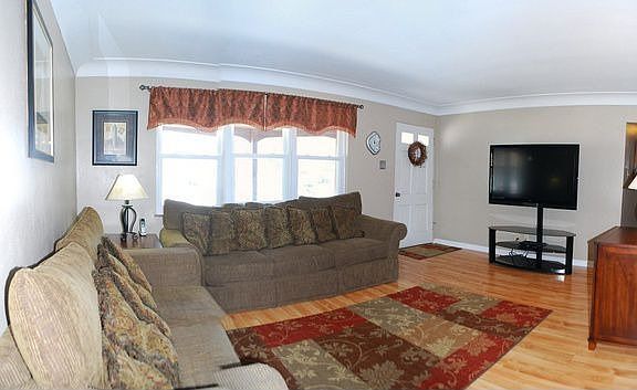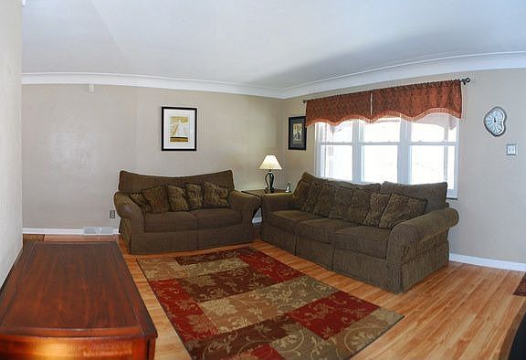 Beautifully updated ranch w/walkout basement on large lot - ready to move right in! Spacious LIV RM w/cove ceiling leads to nice DIN RM open to updated KIT featuring center island w/overhang for stools, stainless appliances & gleaming wood cabinets. Beautiful wood laminate floors throughout! Wall of windows in back of house overlook brick patio (26x16) & large yard. BRs feature gorgeous hardwood floors. Updated full bath boasts shaver height vanity, tub/shower and ceramic floor. Walkout lower level offers large FAM RM and REC area w/gas fireplace, built-in shelving & exposed beams on ceiling. Beautiful updated 3/4 bath, too! Large storage area/play room features dry bar. Great for entertaining! Plenty of unfinished storage in basement and storage shed in yard. HPP provided by seller. Home has been beautifully updated and is ready for a new owner!