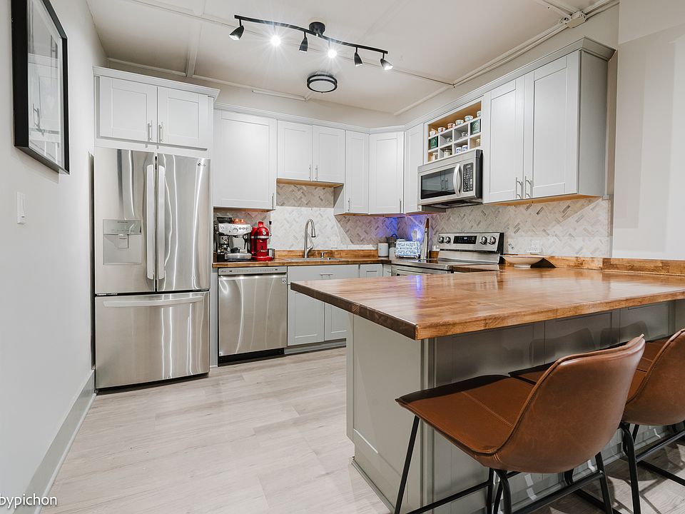 This stunning residence features high-end modern finishes, an open-concept layout connecting the living, dining, and kitchen areas, creating a warm and inviting space. The kitchen boasts stainless steel appliances, a beautiful butcher-block island, custom cabinetry, and an elegant tile backsplash. Large windows fill the home with natural light, and the bonus room offers flexibility for a home office, studio, play den, or extra bedroom.