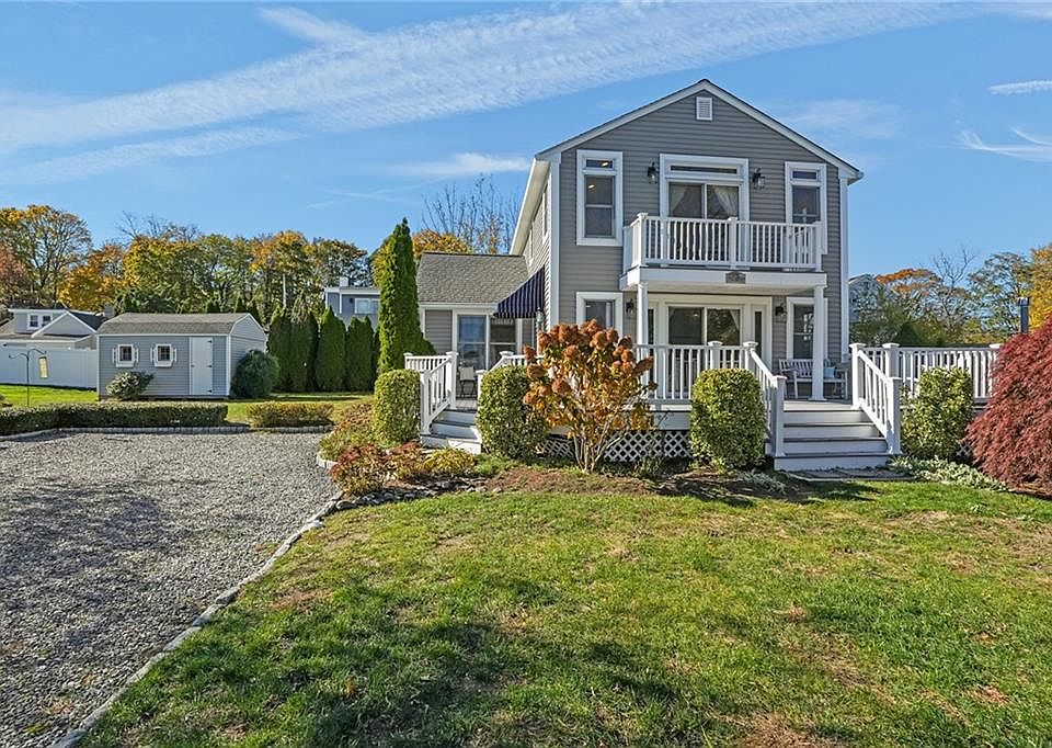 Ideal coastal living in sought-after Laurel Park! With views of the tranquil Kickemuit River, this inviting home captures the essence of a charming coastal lifestyle. Enter via a large front Trex deck to discover an open-concept layout filled with natural light and warmth. Enjoy river views through expansive windows and captivating sunrises from the living room, featuring hardwood floors, French doors, and a defined dining area. The bright kitchen with stainless appliances opens seamlessly to the living and dining spaces, offering ideal flow outdoors to a spacious deck—perfect for gatherings. A full bath with a laundry area, adds convenience on the main level, while a first-floor bedroom doubles perfectly as a home office. Upstairs, the primary suite features a cathedral ceiling, a Trex balcony for sunrise coffee, a large walk-in closet, and an en-suite bath. Charming shutters enhance the coastal cottage vibe of this peaceful retreat, while two additional bedrooms offer ample windows and double closets. A matching shed enhances curb appeal, while practical upgrades—waterproofed basement with French drains, vinyl siding, whole-house generator, and landscaped yard—ensure easy maintenance. Enjoy access to the voluntary neighborhood beach association with beach, boat launch, kayak storage, and more—right outside your coastal cottage door!