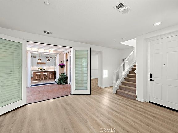 Walden Park Beauty! This highly upgraded home features 3 bedrooms, 3 bathrooms, 1 half bath and a large loft that can be converted into a 4th bedroom. New completely remodeled kitchen with custom island and hood, white oak cabinetry, Cafe appliances and quartz countertops. Each bedroom has an ensuite bathroom. New luxury vinyl wood flooring, custom cabinetry, plantain shutters, garage with epoxy flooring. Additional upgrades include OWNED SOLAR and RE-PIPED with PEX piping. Two private courtyards. Front door opens to a green space that leads to the Paseo, a walking path with parks, playgrounds and pools. Residents of Ladera Ranch enjoy access to top rated schools, parks, pools and splash pads, a waterpark, skate park, clubhouses, volleyball and tennis courts. HOA also incudes 24 hour security and FREE Cox High Speed Internet.