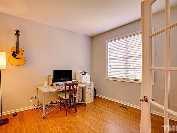 Fantastic S Durham home has lovely bamboo wood flrs flowing throughout the main level. Office w/ french doors. Formal DR w/ arched openings. Cooks Kitchen boasts quartz ctops, tile bksplsh, cntr island, bill desk, ssl appls and a sunny Nook. LR is spacious and has a gas log FP. MBR suite has WIC and sep. tub/shower. 3 add'l 2ndry brs and Loft also up. Enjoy the screened porch with its vaulted wood clg or hill top Pergola w/ slate stone patio. Irrigation system.