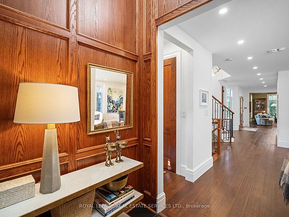 Welcome to this stunning 2-storey residence in the heart of Humber Valley Village, perfectly positioned on a quiet, family friendly street and offering ultimate privacy with its treed lot backing onto church. Completely move in ready, this home combines thoughtful design, quality craftsmanship, and modern upgrades throughout. Step inside and be wowed by the open concept main floor (renovated in 2017), featuring a seamless flow between the living, dining, and kitchen areas - ideal for both everyday living and entertaining. The chef's kitchen impresses with high end JennAir appliances, Quartz counters, a large centre island with a custom walnut dining extension, and walk-in pantry. The living room boasts a gas fireplace, while the cozy family room at the rear overlooks the serene backyard and features a wood-burning fireplace. Plus mudroom with garage access, main floor laundry, and powder room complete this level. Upstairs, you'll find 5 spacious bedrooms, including a peaceful primary suite with a walk-out balcony surrounded by treetops, a walk-in closet, and a luxurious 5pc ensuite. Bedroom 2 features its own 4pc ensuite, while bedrooms 3 & 4 share a semi-ensuite bath - plus a versatile 5th bedroom perfect for a home office or lounge. The renovated lower level offers even more living space, with a bright rec/games room, gas fireplace with built-ins, wine cellar, gym, an additional bedroom with a 3pc semi-ensuite and steam shower, and generous storage rooms. Outside, enjoy a private backyard oasis complete with multiple lounging areas, a hot tub, and a storage shed. Major updates include a new roof (2023) and furnace/AC (2022) + emergency generator - all you need to do is move in and enjoy! Located in the coveted Humber Valley Village community, close to top-rated schools, parks, shopping, highways, and downtown Toronto - this home truly has it all!