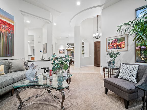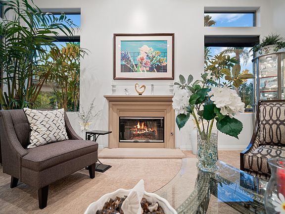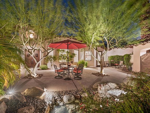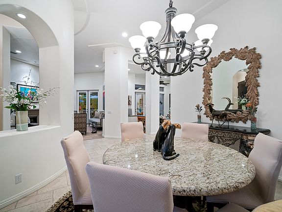 Welcome to Mesquite Ridge in Rancho Mirage! Front courtyard entry with lush tropical landscaping a quaint fountain. Entering the house, an open floor plan with high ceilings 3,074 sq ft 3BD/3.5BA. Features include a see through bar from the living room to the family room - a perfect space for entertaining. The kitchen boasts Viking professional appliances, a bar top as well as a breakfast nook. The master suite has ample space for a separate sitting area as well as a grand master bath with dual sink vanity large soaking tub and cedar lined closet with center island. Each guest room are en-suite perfect for guests. The backyard has numerous seating areas, circular fire pit, bbq island & large impressive salt water pool/spa with water features, new awning and more. Newer AC units with 26 variable speeds including garage AC.Centrally located at the base of the Ritz Carlton hotel and conveniently located close to Entertainment, Shopping and Dining and Palm Springs.
