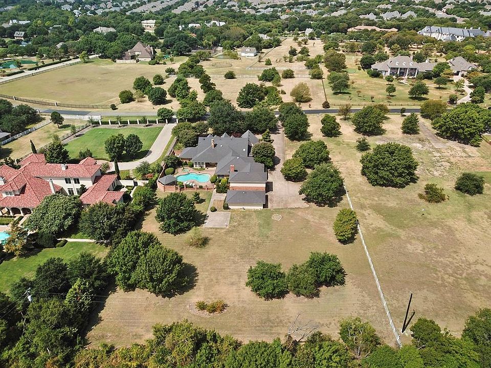 Beautiful 1 story classic in Stonebriar Creek Estates! 4 bed, 4.1 bath situated on 2+ acres in the heart of Frisco. Heavily treed circle drive out front leads to all the privacy you have in this home. The master is oversized with two bathrooms. Features and updates include: Vaulted ceilings, hardwoods, built in fridge, double ovens & TONS of closet space. Outside has pool, spa and covered sitting area. This yard & lot has massive potential for a renovation or new construction. Opportunity to own in one of the most exclusive neighborhoods in Frisco. This gated, 2+ Acre community is conveniently located just NW of DNT & 121. Home has 3 car garage, tractor garage and boat garage that could accommodate 6 vehicles.