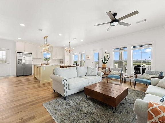 Welcome to 4 River Road! As you walk in, you're immediately greeted by an open concept layout that emphasizes space and light. The living area flows effortlessly into the dining and kitchen spaces, with windows offering views of the water, allowing natural light to flood the entire space and creating a feeling of continuous connection with the outdoors. The kitchen features a large island with seating, stainless steel appliances, and ample cabinetry that blends seamlessly with the living area. Outside, you will find a beautiful covered porch offering multiple areas for relaxation and entertainment. A private dock allows for easy access to boating, kayaking, or simply enjoying the serene waters. All measurements are more or less.