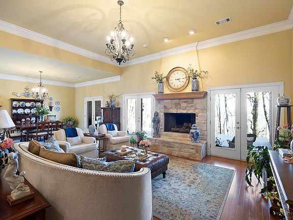 Move in ready! Seller is motivated! Discover your private retreat just minutes from town! Nestled on 7 wooded acres, this custom 4-bedroom, 4-bath home offers over 3,700 sq. ft. of comfortable luxury. The spacious living room features 14-foot ceilings, large windows, and a cozy fireplace that fills the home with warmth and light. The open kitchen includes custom cabinetry, quartz countertops, a walk-in pantry, and dining space perfect for gatherings. The main-level primary suite is a true getaway with its own fireplace, dual walk-in closets, and spa-inspired bath. A walk-out basement adds flexible space for guests, a game room, or home theater. Enjoy peaceful mornings or sunset dinners on the oversized deck overlooking the trees. Quality construction with 2x6 walls, abundant storage, and timeless finishes throughout. Conveniently located just one mile from I-40 and local restaurants—this home offers the perfect blend of privacy, space, and convenience!
