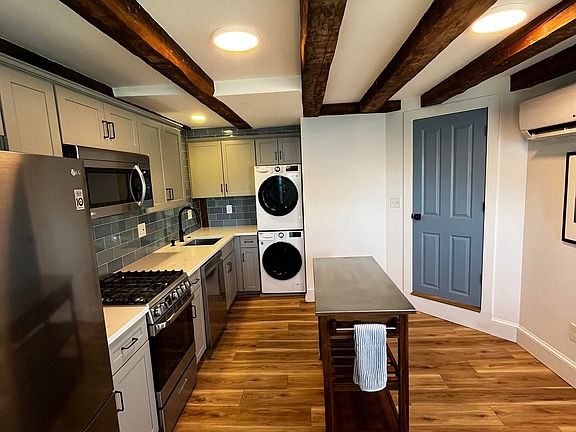 This stunning condo is nestled within a beautifully preserved 1807 Greek Revival, just steps from downtown Portsmouth. History lovers will delight in knowing the home appears on the historic 1813 Hales map of compact Portsmouth. Inside, you’ll find a spacious one-bedroom layout with 1.5 baths and charming views of the downtown church steeple from the living room. Completely renovated in 2023, the condo blends old-world character with modern luxury — original exposed beams contrast beautifully with quartz countertops and stainless-steel appliances. With new windows, spray foam insulation, and efficient mini-splits, comfort is ensured year-round. Step outside and enjoy the very best of downtown shopping, dining, and coastal charm — all just moments from your door. (NOTE: Listing agent has personal interest in property.)