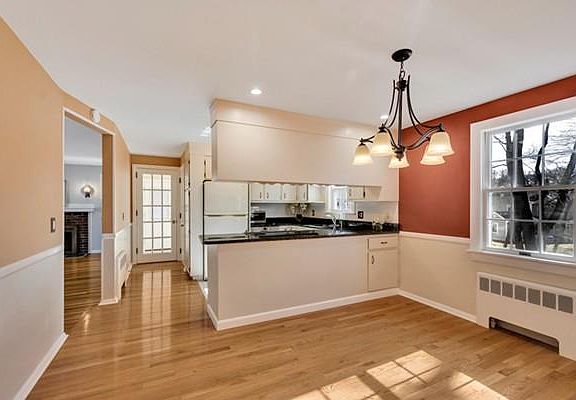 A rare opportunity to own this meticulously maintained classic ranch! Sitting in a quiet neighborhood behind town center, with walking distance to middle and high schools, library, playground and shopping center, this incredibly located darling is ready to be called your home. Hard wood floors throughout first floor, bright kitchen with granite countertop, new GE range with self-cleaning stove and rangehood with exterior ventilation, fireplaced living room, enclosed porch overseeing the fenced backyard, 3 good sized bedrooms, and updated full bath. Gorgeously finished lower level boasts half bath, laundry, a bedroom/playroom and a large tiled family room with a direct access to the garage. Newer roof (2013) and furnace (2012). Front yard sprinkler system. Welcome Home! Vacant and easy to show!