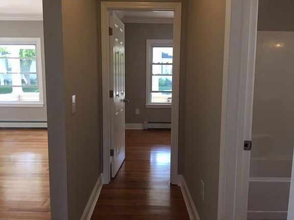 Available for a YEARLY RENTAL starting April 1, is perfectly situated minutes from NAVSTA and bridge and just five minutes from downtown Newport. Step inside to discover a bright, open floor plan. Gleaming hardwood floors flow throughout the main level, leading to a spacious 20' x 12' first-floor master bedroom, complete with his-and-hers closets and a sliding door to a large back deck. The renovated kitchen features white shaker cabinets, granite countertops, and GE stainless steel appliances. The first-floor bathroom has been completely renovated with a new tub/shower combo and stylish tile flooring. An additional first-floor bedroom provides flexibility for guests or a home office.Upstairs, the entire second floor serves as a private retreat, featuring a spacious bedroom with room for an office or play area, a cedar closet, and a newly tiled en-suite bath with a beautiful walk-in shower. The finished basement bonus room (10' x 19') is perfect as a game room, TV lounge, or extra living space, complete with brand-new carpeting. Energy efficiency is key, with a high-efficiency burner keeping heating costs low.Outside, a detached garage and a large driveway provide off-street parking for up to four cars. Newer windows, updated electrical and plumbing, and modern recessed lighting complete this stunning home.