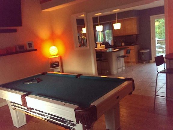 This stunning 3 bed 1.5 bath dormered cape was built in 2004 and has been remodeled many times. The front door opens to a cozy entry way that leads to the large, spacious kitchen. You can comfortably fit 16 people between the gorgeous 8 person kitchen table, breakfast nook and large island. Small flat-screen tv in kitchen as well as plenty of cabinets (2 lazy susan's) and storage space. Granite counter tops, and stainless steel appliances. Central- air. The half-bath is adjacent to the kitchen. Original hardwoods span entry way and master bedroom. Carpet in downstairs bedroom, upstairs loft and 3rd bedroom. Finished basement with built-in wet bar and hard wood laminate floors. Large projection tv in basement for your own theater room. Tons of storage throughout and walk out to large, fenced in backyard. Beautiful play set in backyard and separate dog pen. Large trex deck off the kitchen and oversized 2 car garage with a separate parking area for a boat, RV, etc... Security cameras installed.