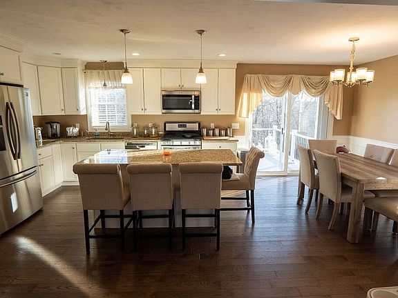 Nestled on over two thirds of an acre, this young colonial has found the perfect location...less than a mile walk to historic downtown Plymouth yet close to highway access. Eat at the table in the large country white cabinet kitchen or choose the center kitchen island with seating for four. Better yet, choose the formal dining room. Stainless steel appliances, granite counters, wood floors throughout the first floor as well as a pantry closet and laundry room. The spacious living room with electric fireplace leads to the staircase to the four bedrooms upstairs, all with w/w carpet and cable. Central air throughout. Don't miss the finished lower level walkout with family room, electric fireplace, cabinets, sink and full-size granite table in finished eating area and partial bath. Large outdoor deck and patio on lovely large lot. Electric fireplace in main floor living room does not convey.