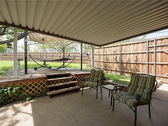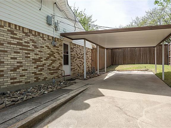You will love this home & all it has to offer! Great culdesac on a huge oversized corner lot with covered patio, extended wood deck, 8ft B on B privacy fence. Beautiful yard. 14 x 16 storage building with electric for nice workshop. Extra concrete parking, double carport on the side with side entrance. 3BR, 1.5BA, 2 LA's, with open kitchen centering both living areas, breakfast bar area too. No carpet in this home. Kitchen has electric cooktop, double ovens, pantry, nice cabinets, french doors to backyard. New Roof, patio & carport covers being installed April 2018. 2 closets in master. Gutters, security system, cameras stay, motion lights, storm doors, extra attic insulation, lines under house replaced.