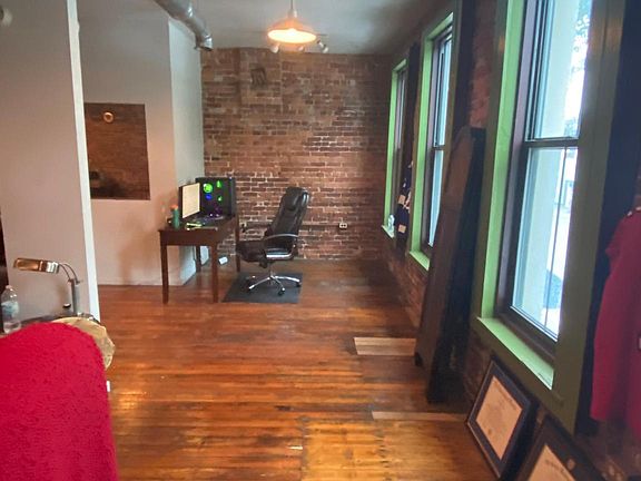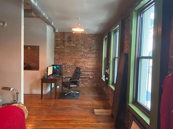 Oversized windowsStunning viewsHigh ceilingsExposed brick wallsWood flooringOpen-concept kitchenTile in the bathroom